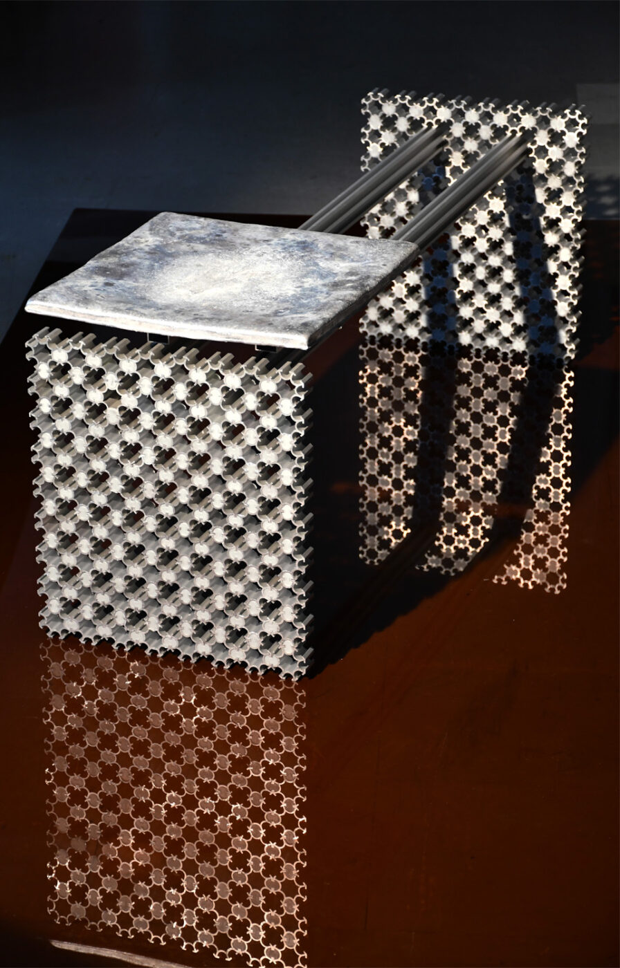 Il a pour objectif de mettre en valeur des procédés de fabrication, ainsi que la matérialité même du matériau — notamment à travers la fonte et l’extrusion.