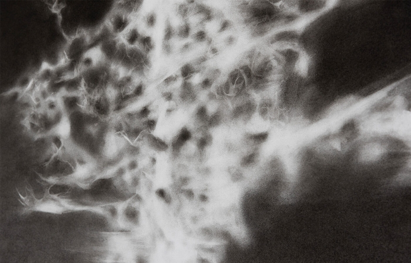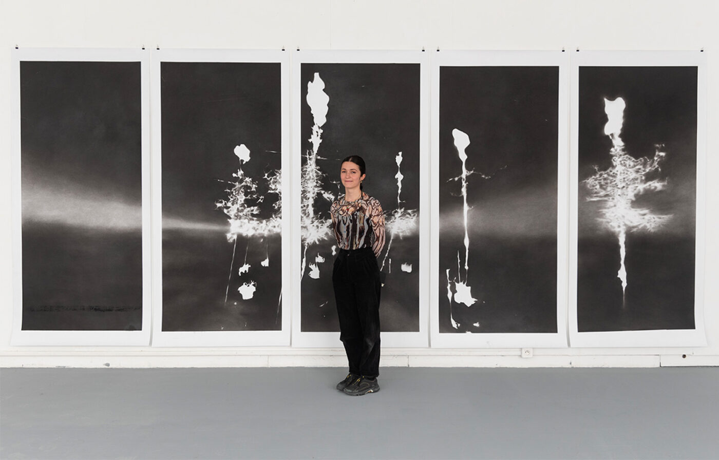 Le travail de Clara-Louise, artiste et compositrice née en 2000 à Colombes, cherche à comprendre comment habiter un monde de plus en plus instable, saturé d’artifices numériques parfois incohérents, et où le paysage tente de s’offrir tout en s’effaçant. Entre la densité de la pierre noire et l’échantillonnage sonore, elle compose des territoires de lenteur et de vacillement, de fragilité, et d’une douce désillusion.
